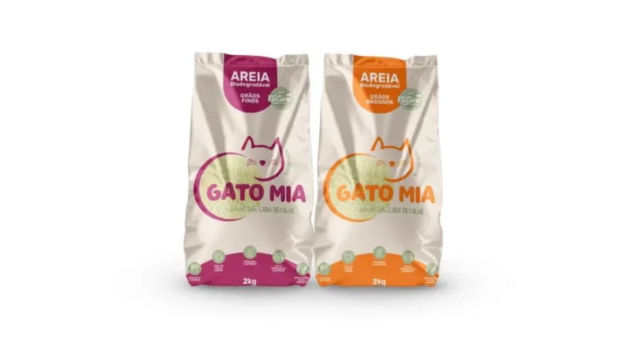 Nas versões em grãos finos e grossos, as areias biodegradáveis estão disponíveis em pacotes de 2 kg e são soluções que combinam sustentabilidade, inovação e cuidado com os felinos.