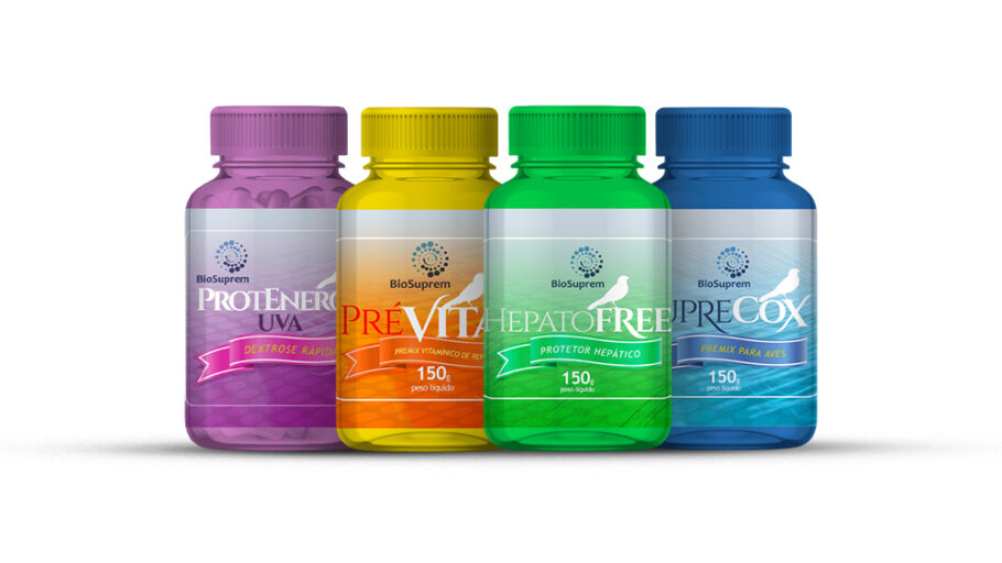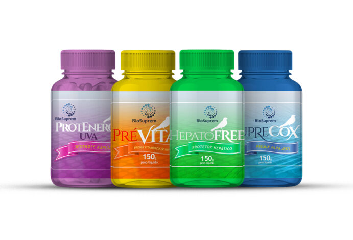 O PréVita+ é recomendado para preparação de pássaros em reprodução, concursos e períodos de estresse ou dietas restritivas. O ProtEnergy Uva é um produto solúvel de fonte de energia metabolizável para momentos de estresse, mudanças de temperaturas, reprodução e recuperação de aves debilitadas ou filhotes. Já o SupreCox ajuda no controle e tratamento da coccidiose, além de contribuir para hidratação e saúde dos pássaros.