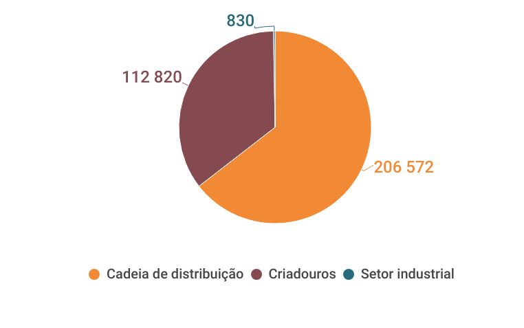 Embora em menor número, o setor industrial registrou uma expansão significativa – 3,8%, passando de 800 para 830 indústrias. Já os criadouros avançaram 1,7%, totalizando 112.820 unidades contra 110.949 no ano anterior.