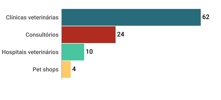 No universo dos serviços especializados, as clínicas veterinárias lideram, reunindo 62% dos empregos do setor, seguidas pelos consultórios (24%), hospitais veterinários (10%) e pet shops (4%).