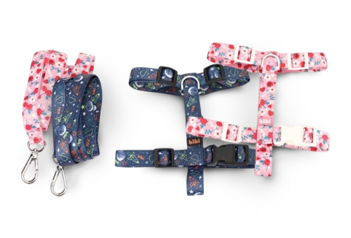 Nomeada de Bibi Pets, a linha conta com peitorais para passeios disponíveis em duas variações de estampa: uma em tons de rosa e outra em tons de azul. Os produtos garantem conforto ao animal, são fáceis de lavar e são livres de substâncias tóxicas.