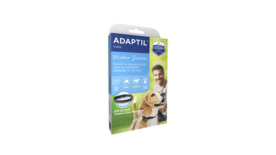 A ADAPTIL® Coleira utiliza a mesma tecnologia do ADAPTIL®, um análogo sintético do odor materno canino, que ajuda a modular o comportamento do cão, proporcionando conforto e serenidade.