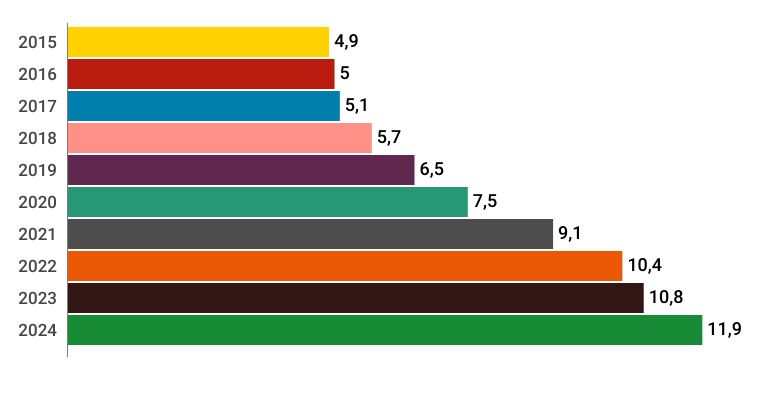 (crescimento anual desde 2015)