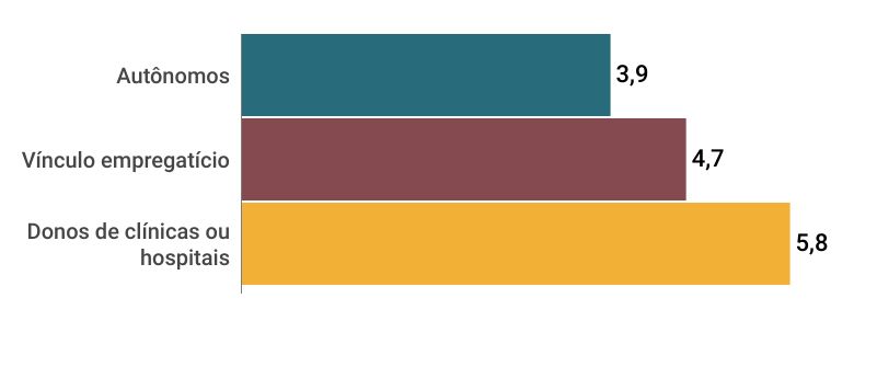 Profissionais mais jovens, com até 29 anos, têm maior presença nas áreas que demandam especialização. Eles correspondem a 43% dos que mencionaram cirurgias especializadas, 43% dos que indicaram exames diagnósticos ou complementares, e 46% dos que apontaram internação como serviço prestado.