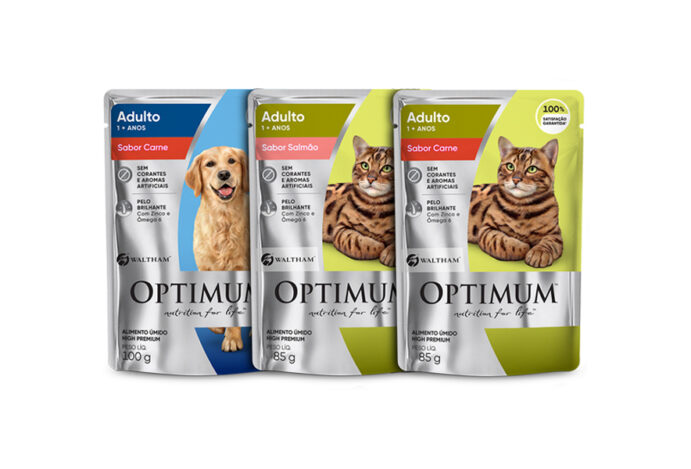 A Optimum, da Mars, está lançando novos sabores de sachês para cães e gatos. Agora os cachorros podem desfrutar do sabor carne, enquanto os felinos têm opções de carne e salmão.