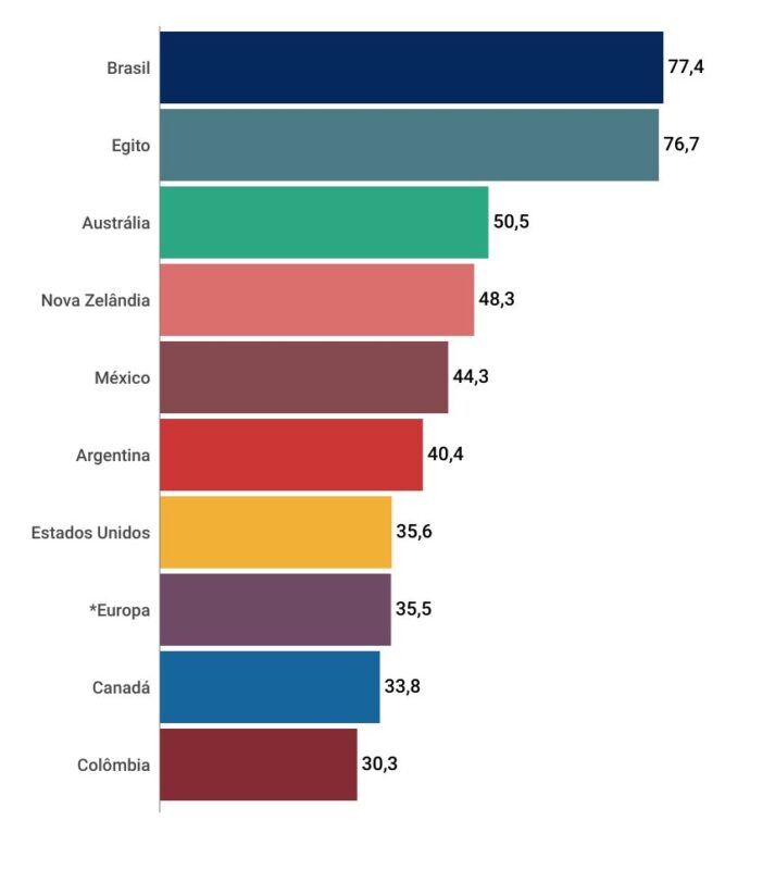 Quando avaliado o número de veterinários em proporção ao contingente populacional, o Brasil é líder mundial. O país tem 77,4 profissionais para cada 100 mil habitantes, bem à frente de mercados desenvolvidos como China e Estados Unidos, além da própria Europa.