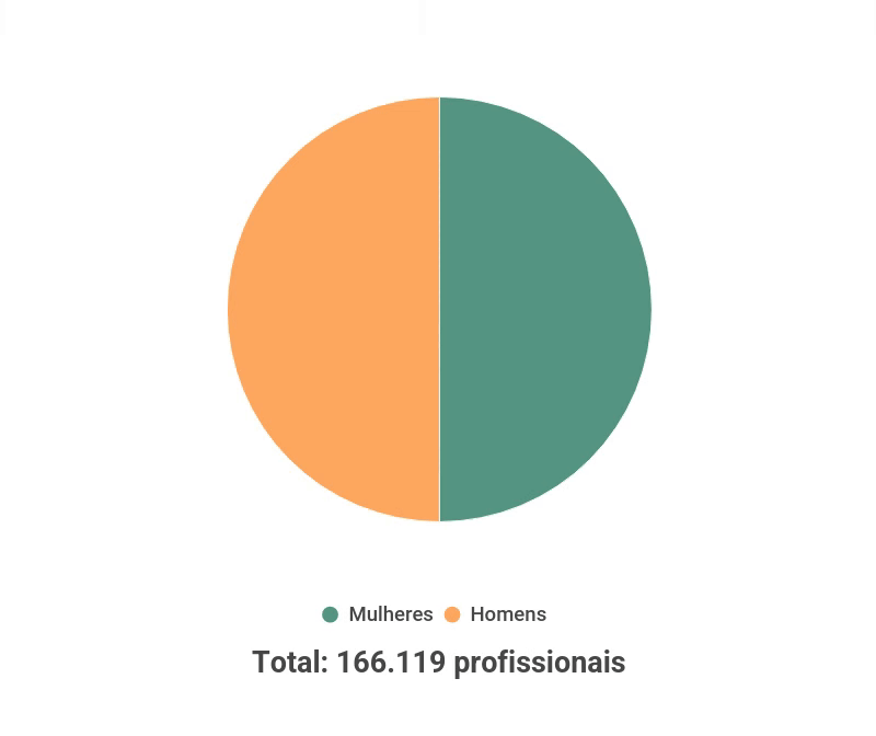 Embora as estimativas apontem que o número de veterinários no Brasil seja superior a 200 mil, cerca de 166 mil profissionais estão ativos e credenciados no sistema do Conselho Federal de Medicina Veterinária (CFMV). Deste total, 56% são mulheres e 44% são homens.