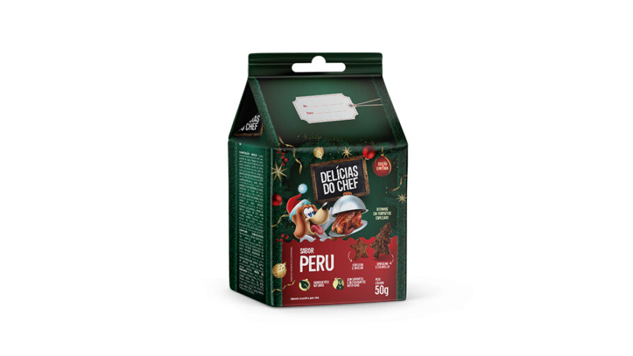 A edição limitada Delícias do Chefe conta com bifinhos 100% naturais, sem corantes e antioxidantes artificiais, garantindo qualidade e segurança para o bem-estar dos cachorros. Além disso, o produto vem em formatos especiais – estrela e árvore.