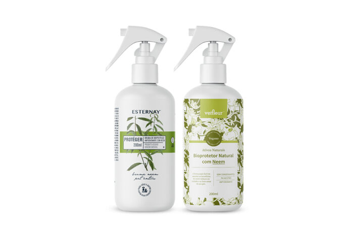O Bioprotetor com neem (fruto que dá origem a um óleo que tem várias propriedades) está disponível em embalagem de 200 ml. É indicado para cães e tem exclusiva ação antioxidante e um pH neutro que trazem proteção e segurança contra parasitas.