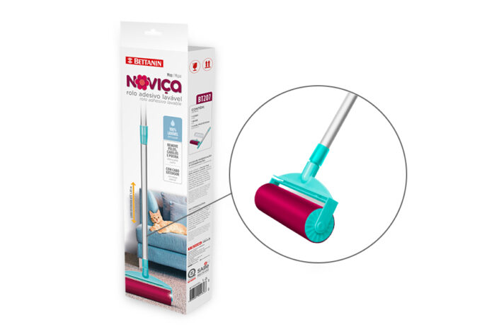 A Bettanin, reconhecida por seus equipamentos de limpeza, está lançando um produto inovador: o Noviça Mop Rolo Adesivo Lavável, ideal para remover pelos de pets.