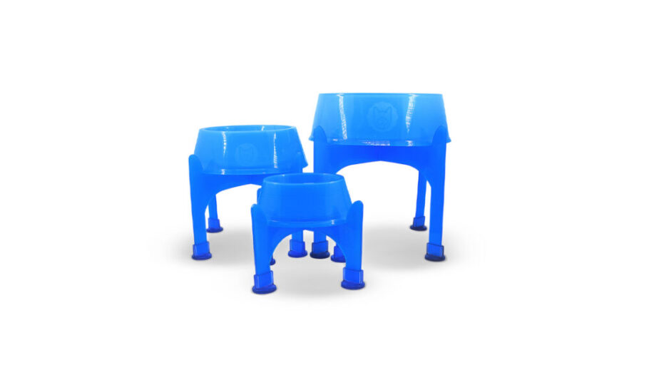 A linha está disponível em três tamanhos e cinco cores – azul, branco, preto, rosa e laranja. O lançamento auxilia na alimentação, sem que o pet abaixe a cabeça, mantendo a postura reta.